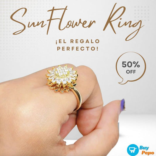 🌻💍 Anillo Girasol Giratorio 🔄 - FACTOR REDUCTOR DE ANSIEDAD® 🧘♀️✨
