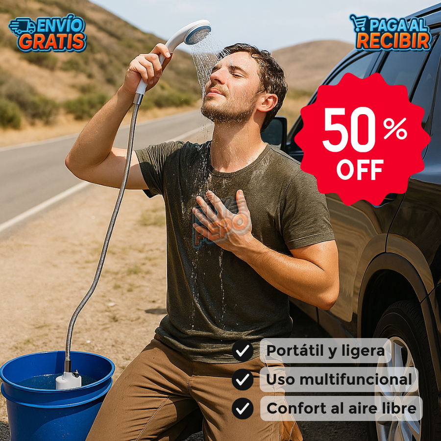 Disfruta 🚙 higiene y frescura 🌊 en cualquier lugar con una ducha portátil y recargable.