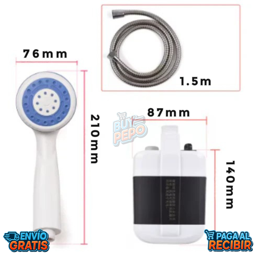 ✅ 🔋 Batería recargable: 2200 mAh para duchas continuas.