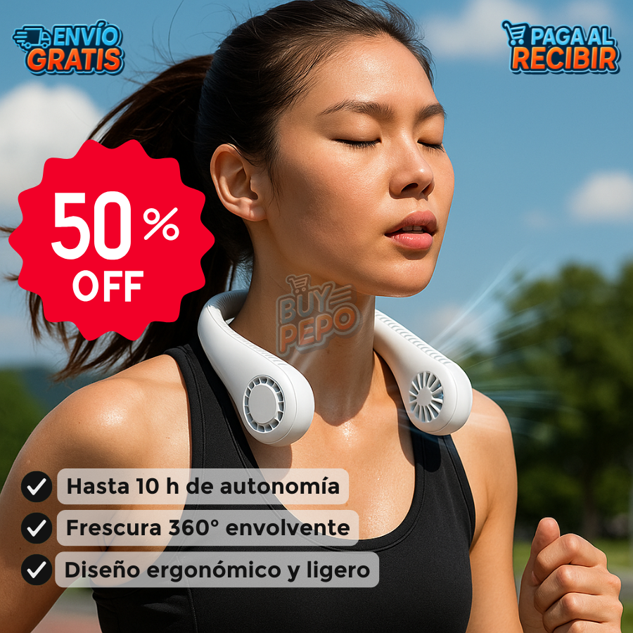 Mantente fresco donde vayas 🌬️ con AeroNeck™ 💨, el enfriador personal portátil ❄️ que te da frescura sin enchufes ni límites.